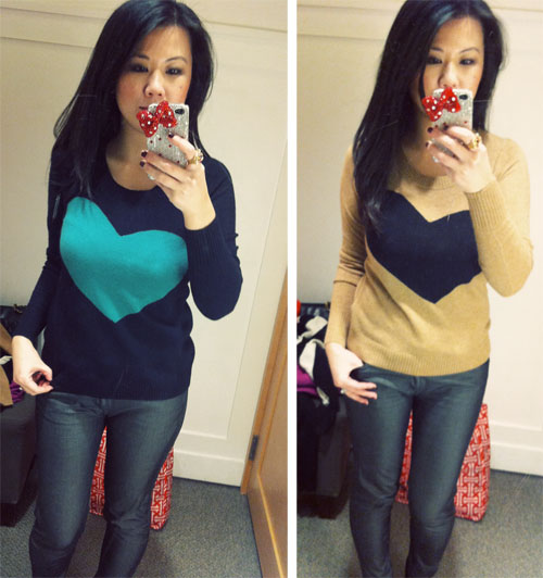 Those heart sweaters are so cute!! I sometimes I have trouble finding tops that fit me properly since I'm so used to grabbing for mediums, but sometimes smalls do fit bitter! I too get surprised. heh heh.