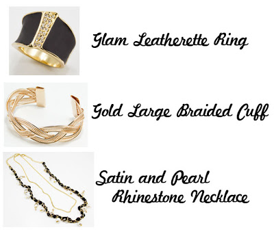 The 2nd prize will be the Glam Leatherette Ring, Gold Large Braided Cuff and the Satin and Pearl Rhinestone necklace.