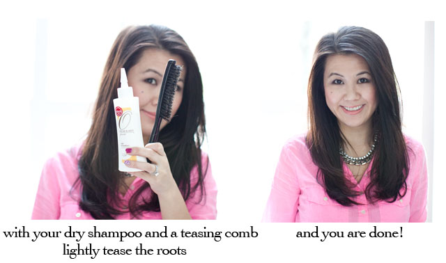 I need the dry shampoo for the texture in my hair to hold the tease but if you don’t need it, you can skip it.  The teasing should be very light as you already have the volume there, you just want to bring it up a little and smooth it out.