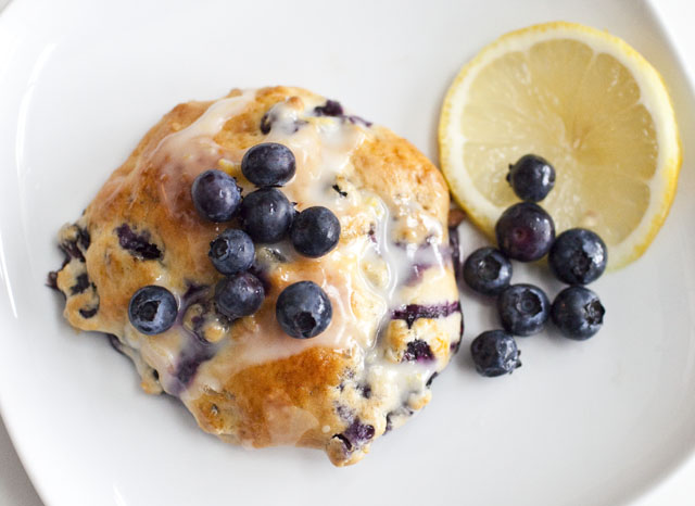 Turns out, they are nothing like a scone but they are YUMMY in their own right! They are light and fluffy with bursts of blueberry and lemon flavor. I was also generous with the lemon glaze as it kind of needed it (they are not that sweet on their own). After my first bite, I thought, “This is just like a muffin!” which I then saved it into my Springpad* as Lemon Blueberry Muffin Tops!