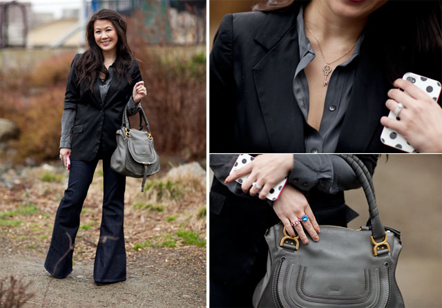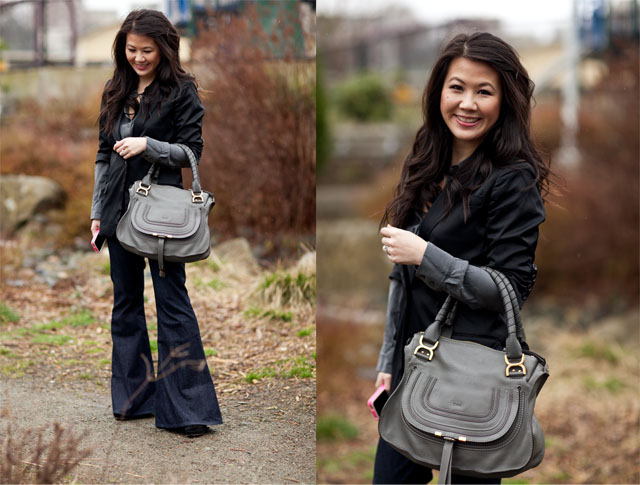 LOVE your hair AND those bell bottoms! And that grey Chloe bag is just luscious! 🙂