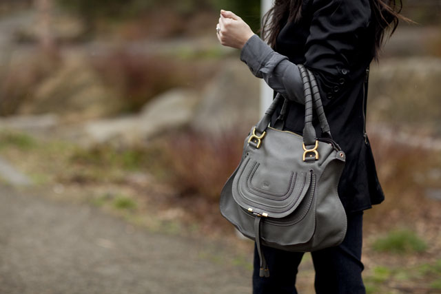 *Chloe Marcie – Mine was from last season so the color is not available anymore.  (I do love this light gray color too) I love my bag, however a little disappointed that the leather hasn’t softened up much.  It creates the weird wrinkles at the bottom of the bag (because of all the crap I carry) but also because the leather is still pretty stiff.  Other than that though, I love the size and shape and it’s really comfortable to carry.