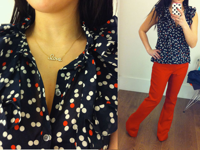 April 2, 2012 at 11:17 pmI love all the polka dots! Especially that red top; looks really cute!