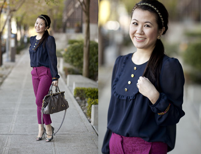 May 16, 2012 at 10:21 amI love this look Tiffany! Those lace teaberry pants are so gorgeous and feminine! teaberry – first time hearing this term but i like it;)Gosh, i loveee your top and it is soo perfect for work. Too bad it's not available anymore!!:(