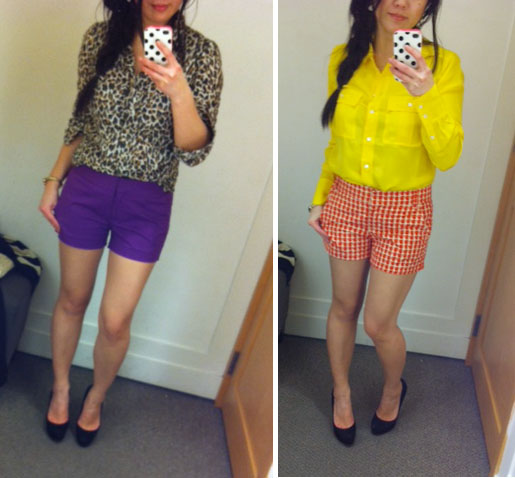 Also on sale: Perfect Shirt in Leopard (I came in wearing this), 3″ Chino Short (in Grappa Punch) and Apple print shorts (so cute! They came home with me.)