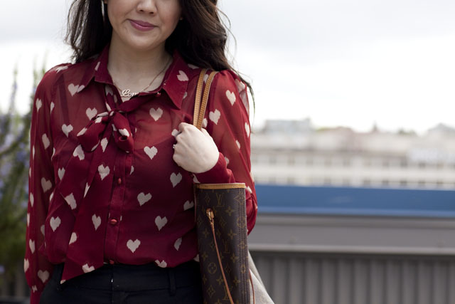 May 16, 2012 at 10:27 amYou are so right about wearing heart patterns in a grown up way cuz i feel the same.I find it so hard too and so far, i've had no luck with any heart shape pattern outfits that is ok for work! lol But you carry it so well with this top!