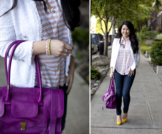 May 28, 2012 at 6:16 pmLOVE! The moment your page loaded and immediately squeeled "Oh my God! Oh my God! Shut the front door!" Proenza Schouler is my favorite! And that fuchsia/orchid color is my all-time favorite color, in general. So basically your bag is my dream bag! Enjoy it! By the way, I love the pairing of the yellow shoes with the orchid bag.