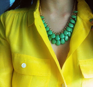 Gorgeous lime teardrop necklace – bet it's one of the many winners in your collections:) and that neon bright yellow top matches perfectly with the necklace.