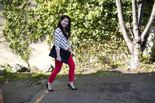 May 31, 2012 at 4:33 amCute yet feminine outfit – love those red jeans! i think big polka dots are hard to pull off but i see you did just that gracefully;)