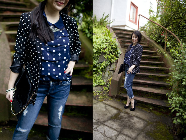 Forever 21 Polka Dot Blazer – sometimes you just get lucky and find good gems in Forever 21 and this blazer is one of them. It’s my favorite and the quality is pretty good too.