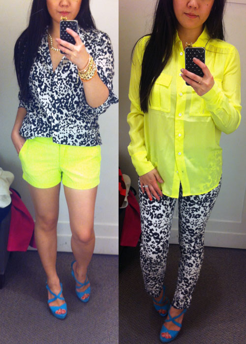 Obviously, loving the black and white with the neon! 🙂 I got the neon yellow shorts as they are one of the colors that I don’t have and they were on sale for $29.99. And the very popular Blythe Blouse came in the same color and was on sale for $59.99 so got that one too. Both the printed pieces were on sale but I didn’t end up getting either.