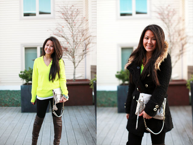 November 26, 2012 at 6:49 pmLove this look Tiffany! It's a good pop of neon and cute boots!! 🙂