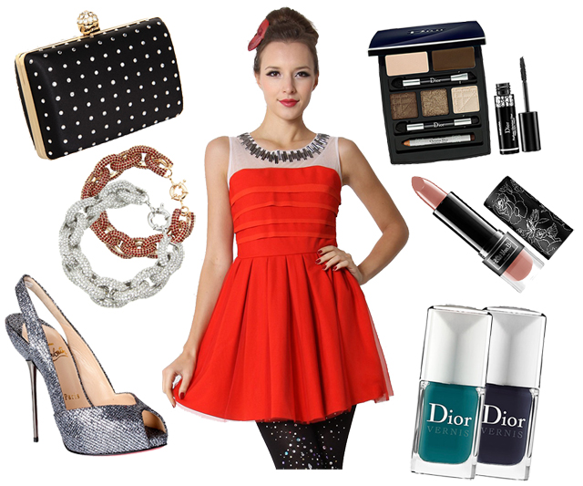 I’m actually contemplating that dress for my New Year’s Eve dress, it’s darling! The model above is wearing tights with rhinestones all over and I love them. I couldn’t find those exact ones but I did find these ones that are similar. I’m ordering them to try them out!