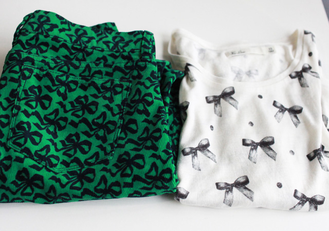 J Crew Bow Print Cords (get extra 30% off with code STYLE2013) | Madewell Bow Tee