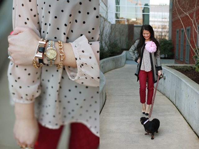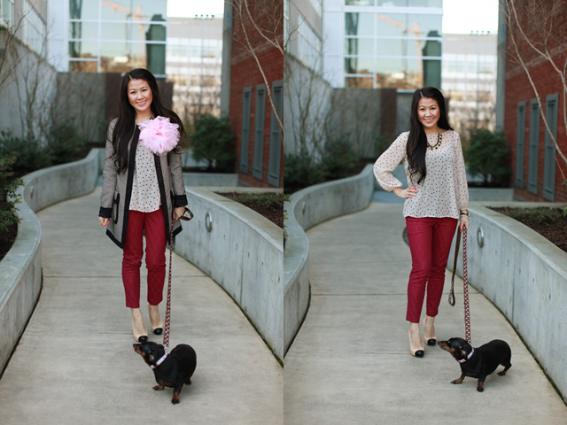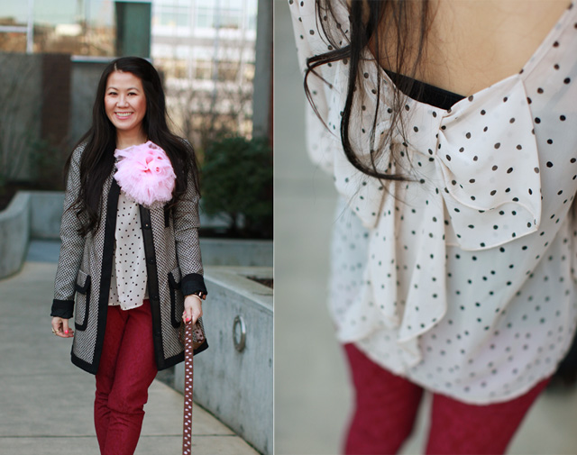 This tweed coat's my favorite – I've been super into tweed lately! You look so cute – and that flower poof – ahhh so in love! 🙂