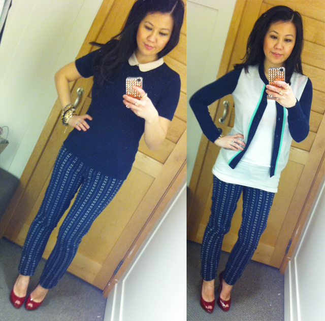 I’ve been so into peter pan collars lately and love that this little sweater is short sleeve. Perfect for the spring/summer when it finally warms up around here. It’s not on sale online but I got it for $35! And the cardigan is a nice staple that I don’t have so thought it would be great to have in my wardrobe. (The pants I’m wearing here are these ones from Madewell. Shoes are Dior.)