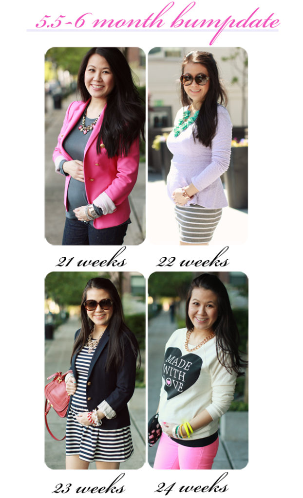 with them!). And I know that 2-3 months from now I’ll probably wish I was this size! It sucks doing certain things now and I hate when I go to yoga and I can’t do certain poses, although I was super proud of myself that at 6 months pregnant I can still do the crow pose (which my teacher was impressed too, she called me out on it in front of the class!) I have yet to have any strangers touch my bump (thank goodness, I don’t want that to happen like ever!) and no pregnancy comments. I think mostly because I don’t really wear tight or form fitting tops and you can’t see it too much so I probably just look chubby to most people. I’m trying to make dates with all my girlfriends lately because in a few months when I’m as big as a house I’m not going to want to go out and be seeing anyone. My baby shower is coming up and I’m SO excited to get together with a few friends and my sister who’s flying out to organize it. I’ve been trying to get baby advice from my sister and all my friends since I don’t have time to read any books. I’m trying to absorb all I can from the awesome ladies that I know and love that have been there and done that. They all have wonderful kids and I am happy to take advice from them! One thing that I will say about pregnancy is that it’s weird. A lot of weird stuff goes on with your body. A lot of weird stuff goes on in your head. I’m definitely not one of those “I LOVE being pregnant” ladies although I’m very thankful to be having a healthy and normal pregnancy but overall, I think it’s totally weird being pregnant. LOL!