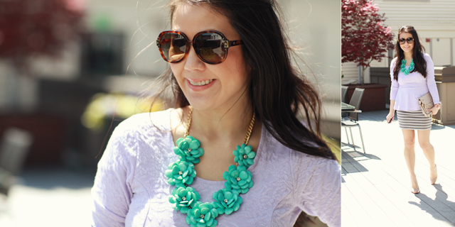 May 29, 2013 at 7:56 pmSo cute! Love the peplum top, is so feminine and pretty. Lavender is such a lovely color on you. Is great that you can take your own pics, I tried once and totally failed at it.