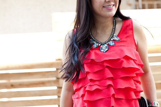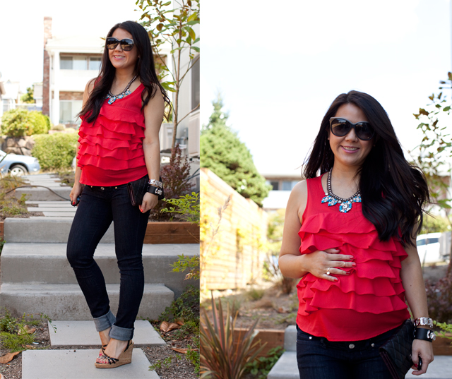 August 22, 2013 at 5:50 amWOW Tiffany!!! You look sooooo pretty!!! This must be one of my fave baby bump pics of you so far!!! I really like that ruffle top, the color and details are so beautiful!!! and lovely statement necklace, loving the colors, great color contrast against your top:D