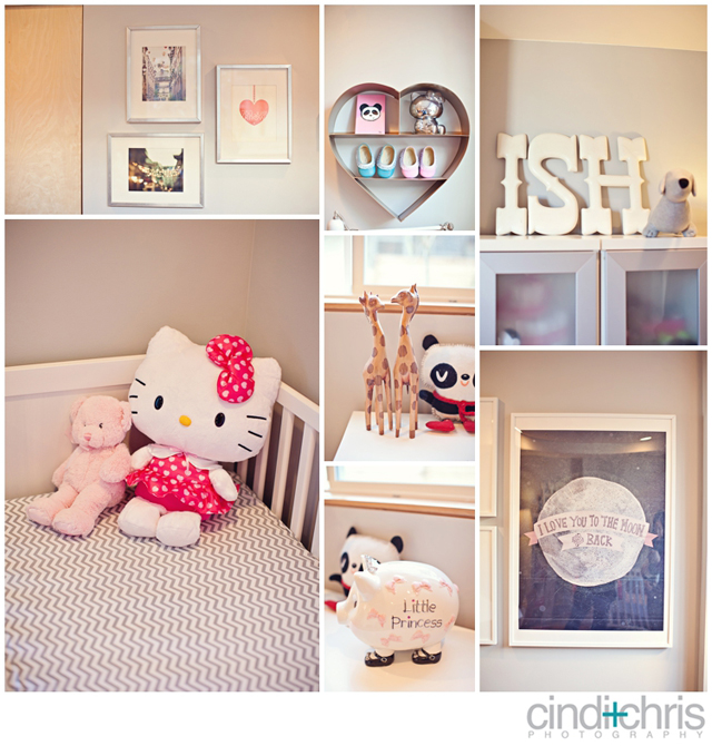 A little peak at her nursery! We’re not completely done decorating it yet but it’s getting there. All the little trinkets in her nursery are things that have a lot of meaning to my husband and I, the giraffes we bought in Jamaica when we got married, the gray dachshund is from our trip to Hong Kong, the stuffed animals and hello kitty are from her grandparents, and I painted that little panda canvas myself!