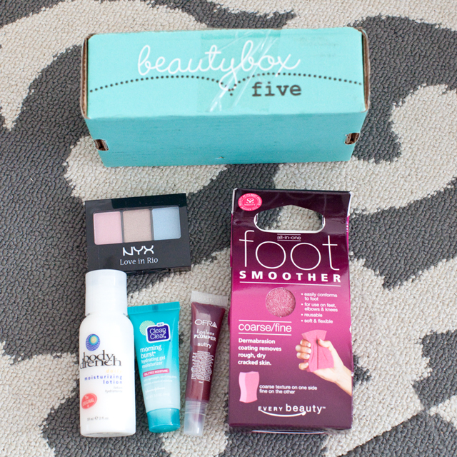 There are so many subscription boxes out there now and I’ve been meaning to try a beauty one for awhile. BeautyBox 5 sends out 5 samples (some full size, some sample size) a month and it’s all sorts of beauty products, nail, hair, skincare, make up, etc… It’s $12/month which I didn’t think was too bad so decided to try it out and here’s my first box!