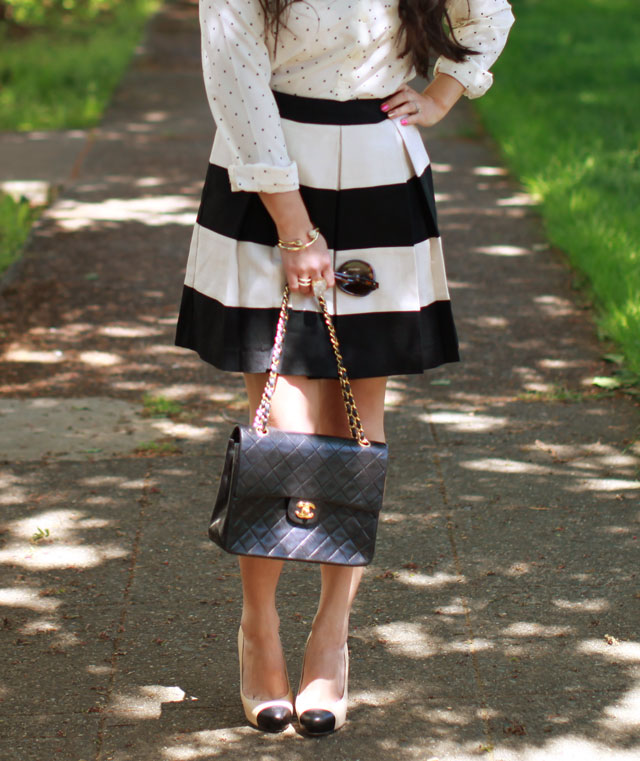 May 27, 2014 at 8:26 amYour blog and you look very beautiful! I loved the whole outfit – the skirt, the shirt (I love polka dot!) and the shoes! The bag is also precious! Who doesn't love Chanel? An elegant and beautiful outfit!