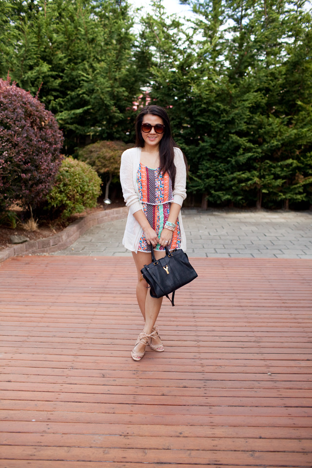 Love the bright colors and fun prints of this romper, cute piece!