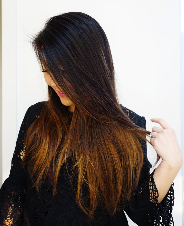 Before I got this done I spent a lot of time googling “Asian Balayage” because I wanted to make sure that I liked the look and to have a specific look in mind to let them know what I was looking for. I always recommend doing that when you are doing any sort of treatment/change to your hair just so you know what you like before you actually go in and get it done. I really liked it because it gives it such a pretty ombre and a natural “sunkissed” look. The best part about balayage is that unlike highlights, when it grows out, it’s barely noticeable since you aren’t dying the top part of your hair. When it grows out, it just looks very natural. My previous balayage was fine but it had been about 6 months so I was ready for some more color.