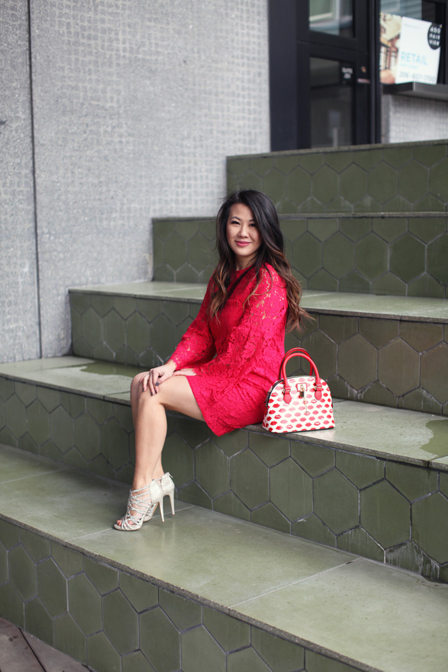 And then we have this pretty lace red dress that’s perfect for date nights with my husband and these sparkly heels that make me feel oh so fancy!  I just love the the lace of this dress and the bell sleeves are just so fun!