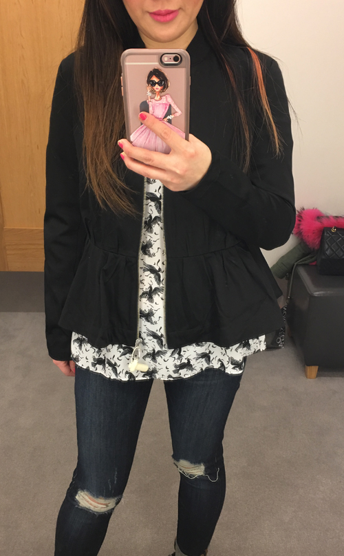 I’m always cold, so I don’t go anywhere without a jacket, even when it’s warm out! I spotted this peplum hem jacket and just had to try it on. It’s just the right amount of girly detail that I can wear with everything but still feel a bit dressed up.