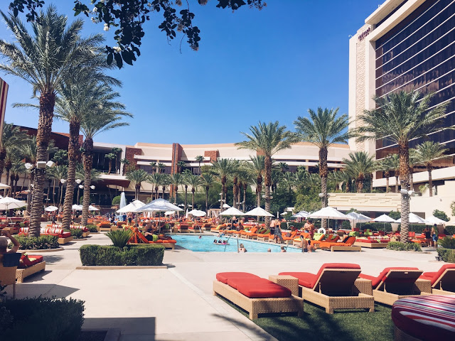 I’ve been to Vegas, a lot.  I think this was my 12th time being there.  And I’ve always stayed on the strip so this is the first time not being on the strip but it was absolutely what I needed.  If you haven’t been to Vegas before, staying on the strip is a no brainer!  You definitely have to experience it once in your life. But if you are a frequent visitor, a place like the Red Rock Resort is a great option.  It was about a half hour from the strip which was an easy uber/taxi ride for when we did go out at night but we just stayed at the hotel during the day relaxing by the pool and eating all the food!