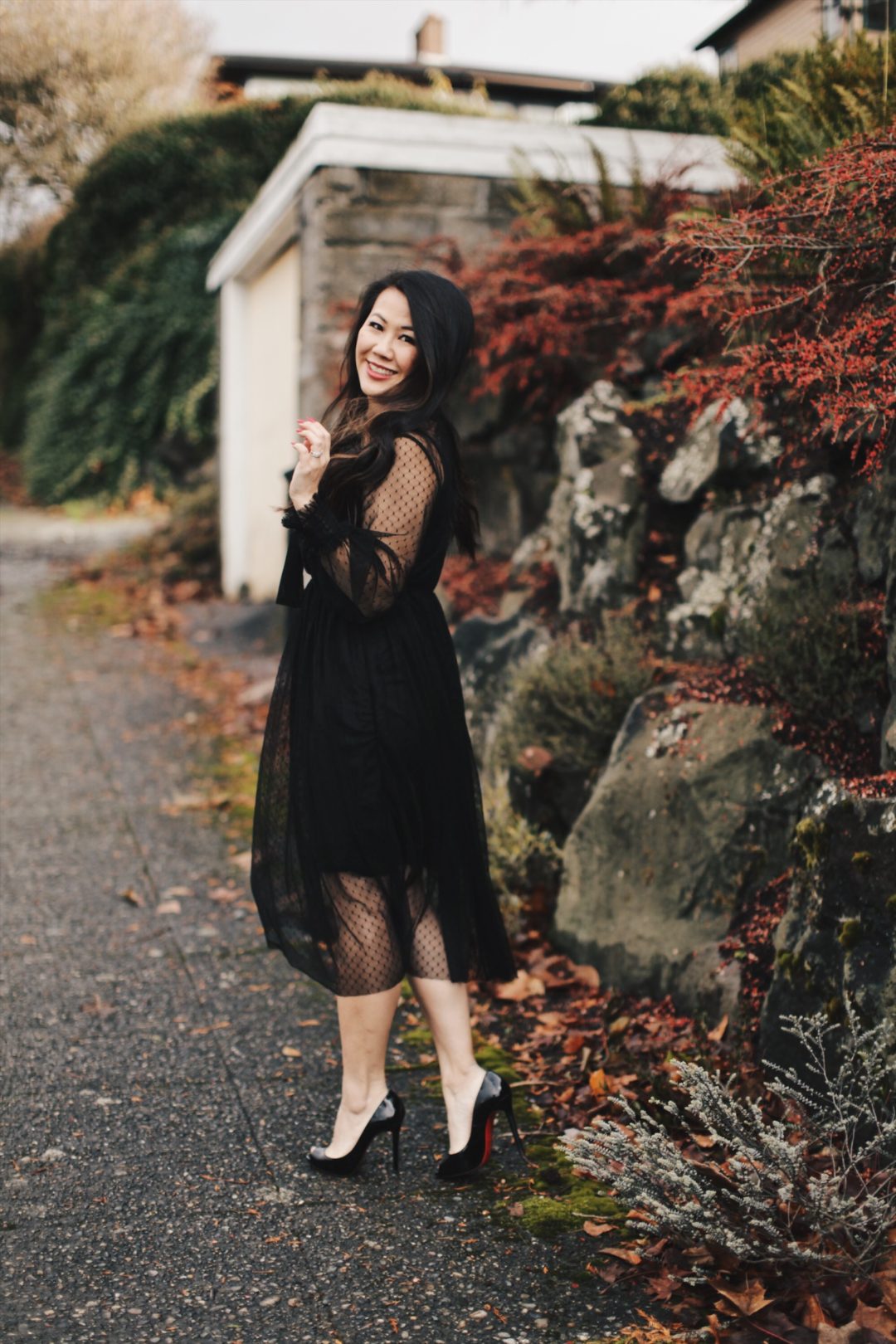 Chicwish Black Lace Dress and Louboutin Heels