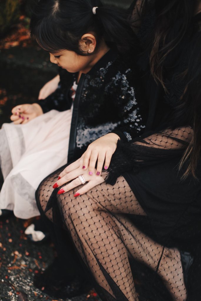 We were headed out to our anniversary dinner and I loved pairing the ring with the black lace dress as it just looked so classic and elegant together.  One of my favorite things in the world is to take photos with my daughter (and my husband too, but he’s usually the one behind the camera) She also loves to dress up and take photos with mommy so it’s always a fun time when we take pictures.