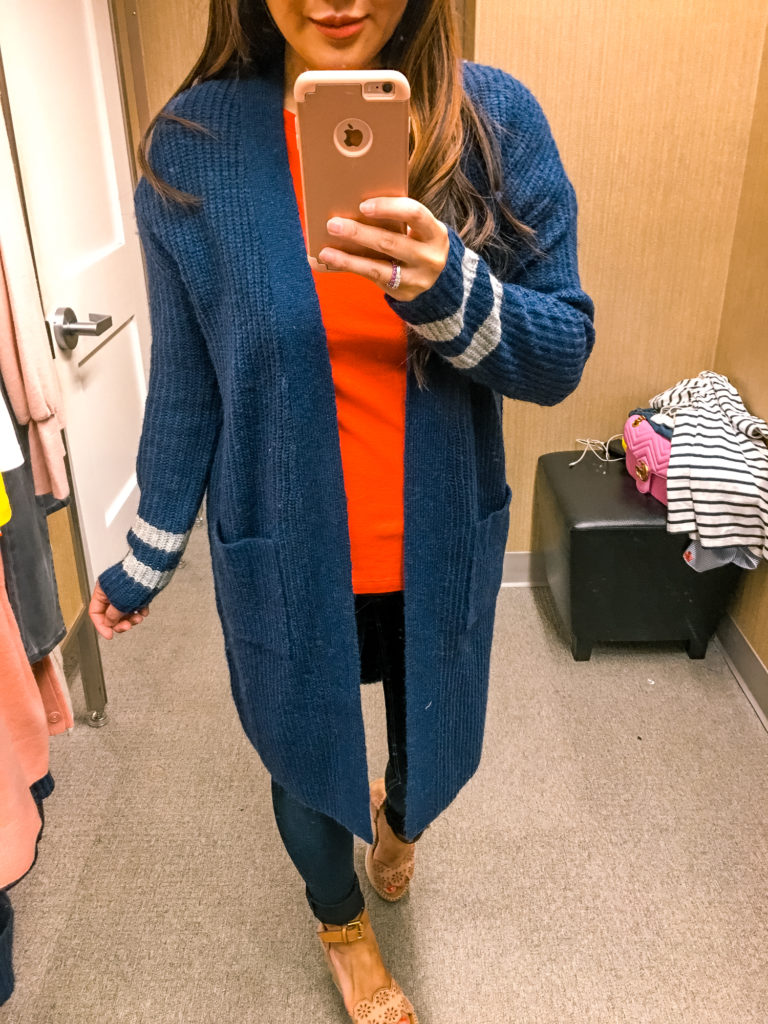 I saw this cardigan comes in petite sizing which I’m going to try. I’m wearing the regular XS which I found to be a bit too big/long on me but I think in petite it will be perfect!
