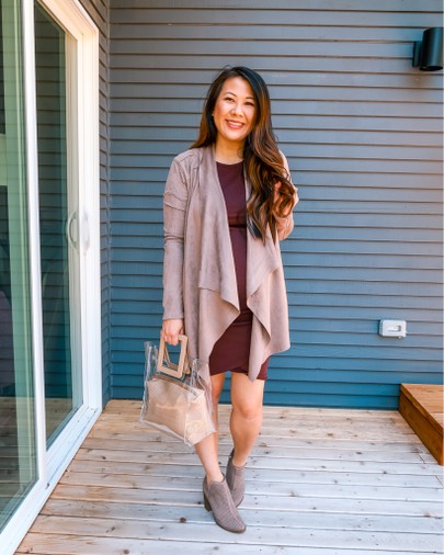 Sweaters and jackets are one of the best parts of a Fall wardrobe. I love anything with pockets, draping and rich fall textures like suede for warmth.  The jacket I’m wearing above is so soft and goes with everything, it’s a wardrobe fave!