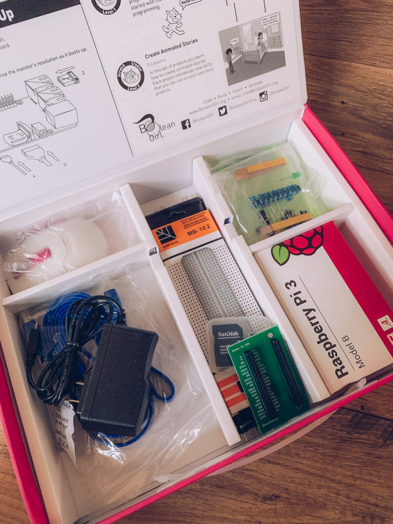 This kit is from Boolean Girl which is a non profit corporation educating girls to code, built, invent and animate. I think it’s so neat that there are companies and groups like this just to teach girls and help them start to learn all of these things at a young age!