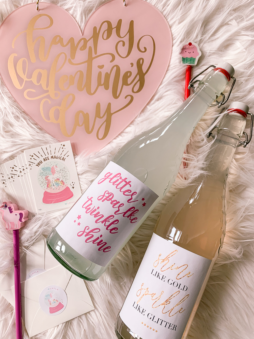 I always loved exchanging Valentine’s in school and Layla loves it just as much as I did. I found these adorable glitter unicorn cards from Minted and I thought they were perfect for her to exchange with her friends. Pencils and erasers are a fun and inexpensive gift to hand out with the cards!