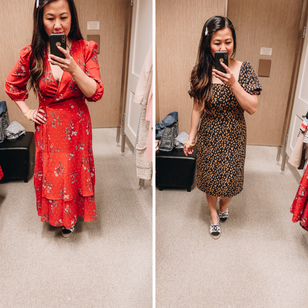I did buy this dress but didn’t photograph it yet, so wanted to share the dressing room photo. I love finding maxi dresses that work for petite girls like me! The square neck dress is cute and would look so much better with nude heels.
