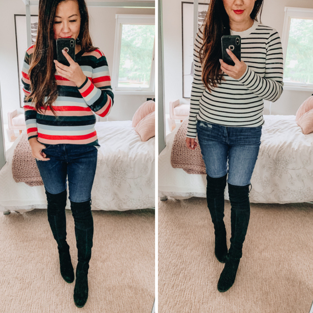 cardigan || striped top || jeans (left) || booties