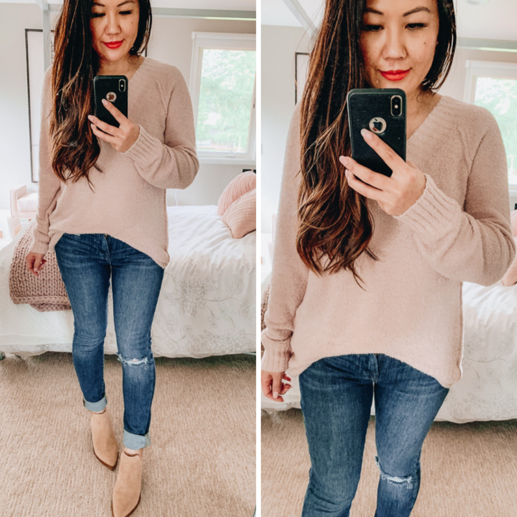 This sweater is my top favorite for this year! So soft and really easy to wear. I love this color too, it’s the perfect neutral sweater to wear day and night.
