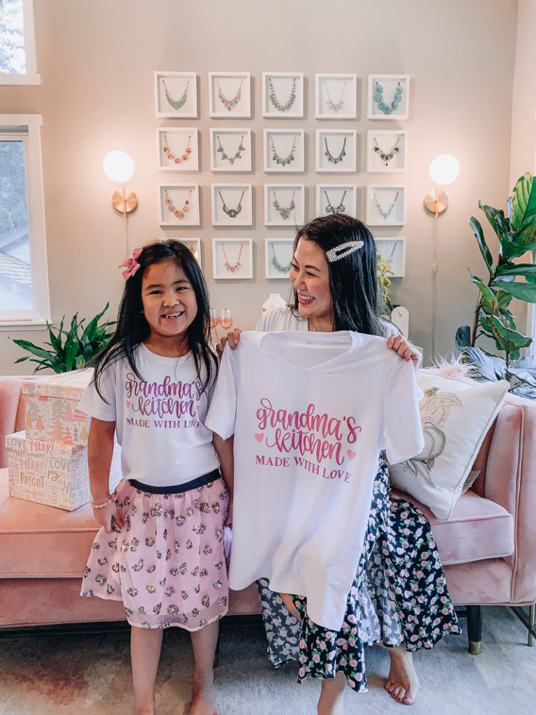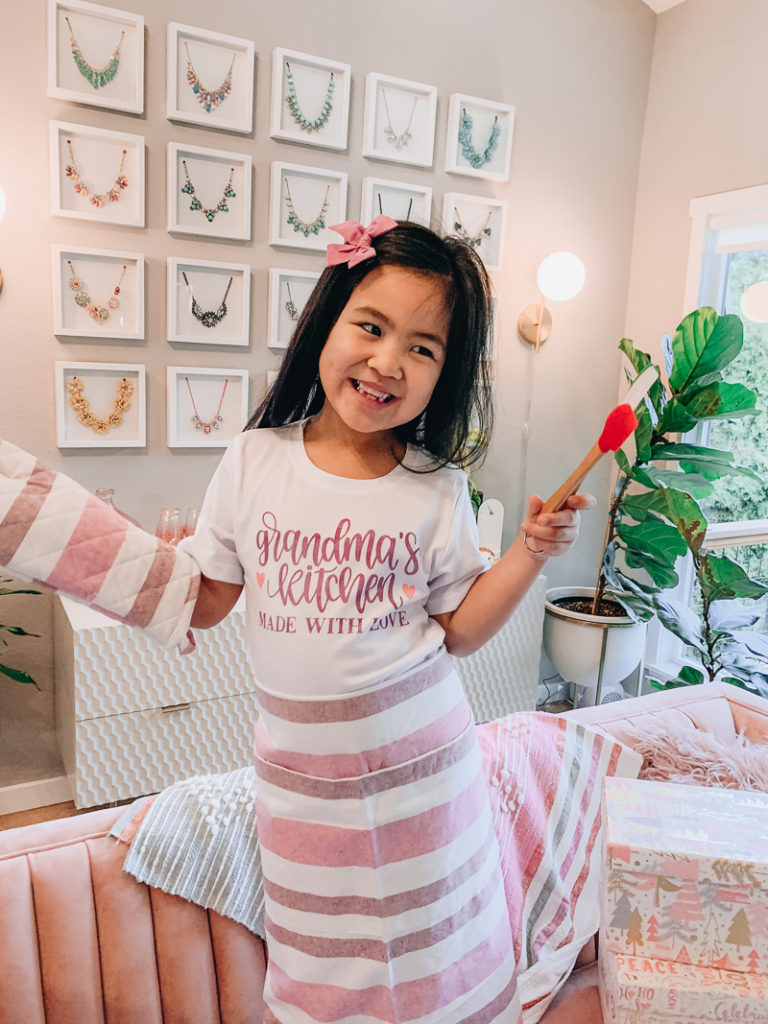 Every year grandma makes the best holiday cookies so I thought it would be so fitting for Layla to give her this shirt for Christmas! Layla loves matching mommy and when I told her that she could match Grandma too, her eyes lit up and she couldn’t wait to get started!