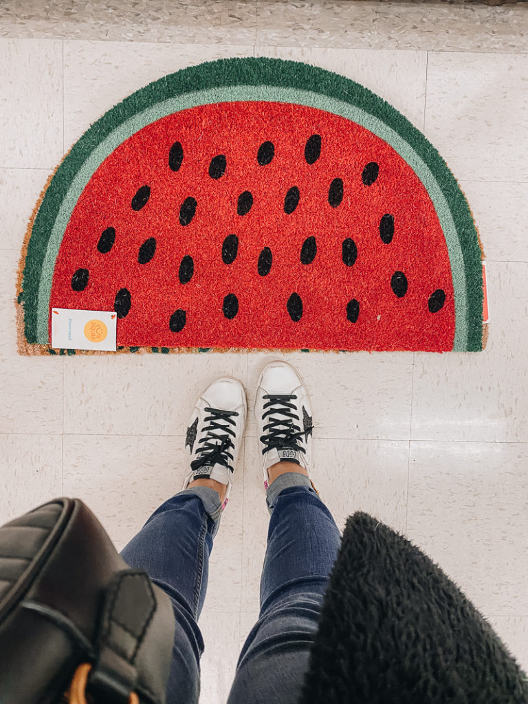 I layered this one with a checkered doormat as I liked that it gave it a bit of dimension. Don’t be afraid to layer and mix things up for your decor, the smallest things can make the biggest difference.