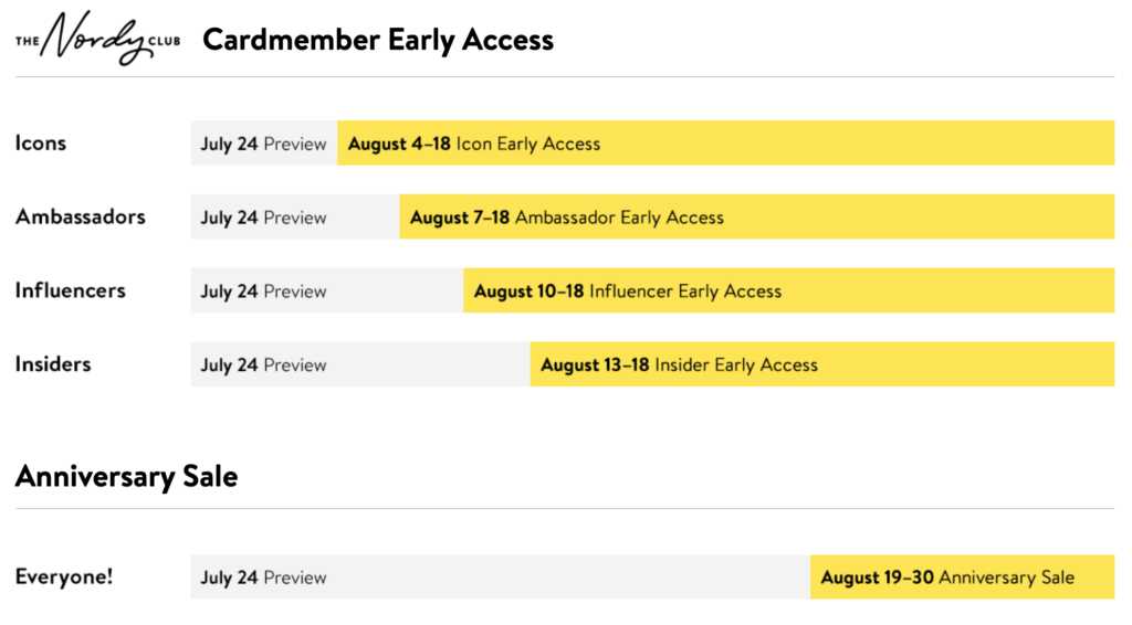 Check the schedule below so you know when you can shop! If you are a cardmember, login to your Nordstrom account to see what level you are.