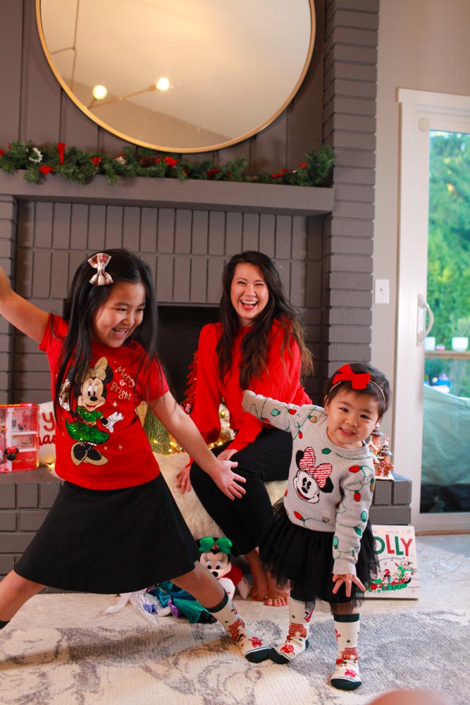 I love putting my girls in Christmas sweaters. They will wear them from the moment I buy them until the end of December! We get good use out of them and I have to say that Disney makes some of the cutest Christmas sweaters!