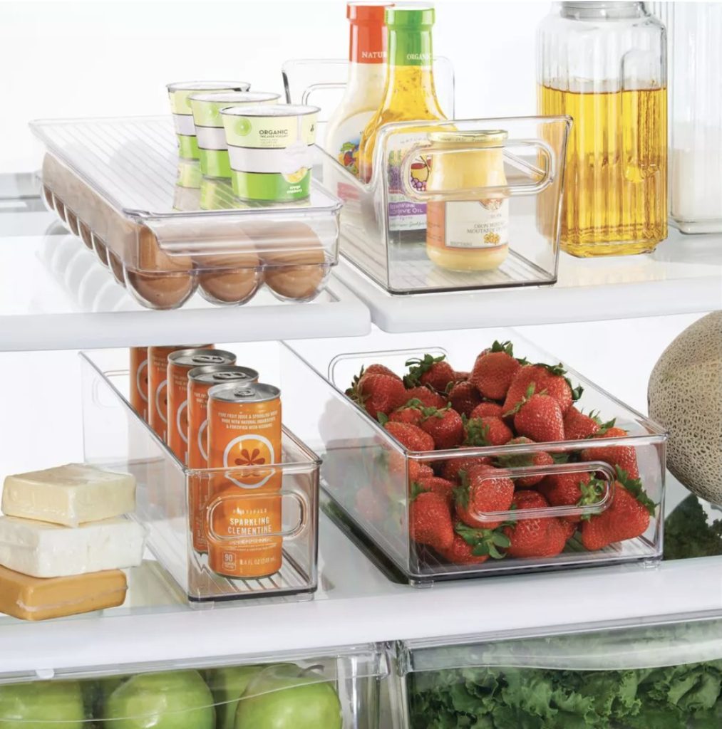 Don’t feel like you need to pack your entire fridge with these organizers! Each family is different so if you have more leftovers than you do pre-packaged foods, find containers that will fit your fridge and can stack.