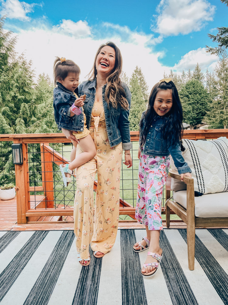 Our outfits: Mom jumpsuit | Girl Jumpsuit | Toddler Romper | Girl Sandals | Toddler Sandals