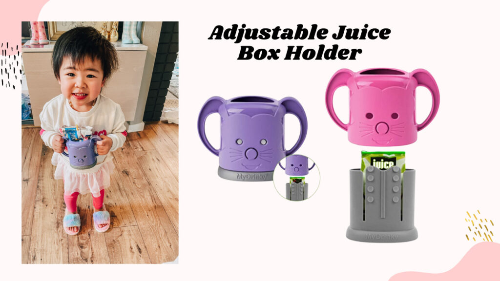 My little one always has to have what her big sister has. I resisted giving her juice boxes for the longest time and always just transferring the juice to a sippy cup. But when she kept on asking for the juice box we finally just gave in, however it just made a mess! Toddlers to not underestand not to squeeze the juice box or pouch. This juice box holder is perfect for her little hands and we never have a mess!