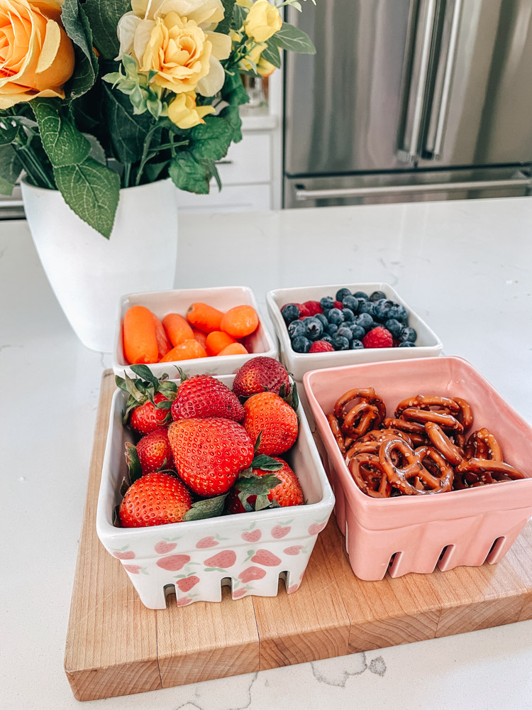 I bought these baskets and have used them every day since I got them! My kids love fruit and I love that you can easily wash your berries right in these baskets. I fill them up with all sorts of snacks and fruits and they are the perfect size containers to hold them all.