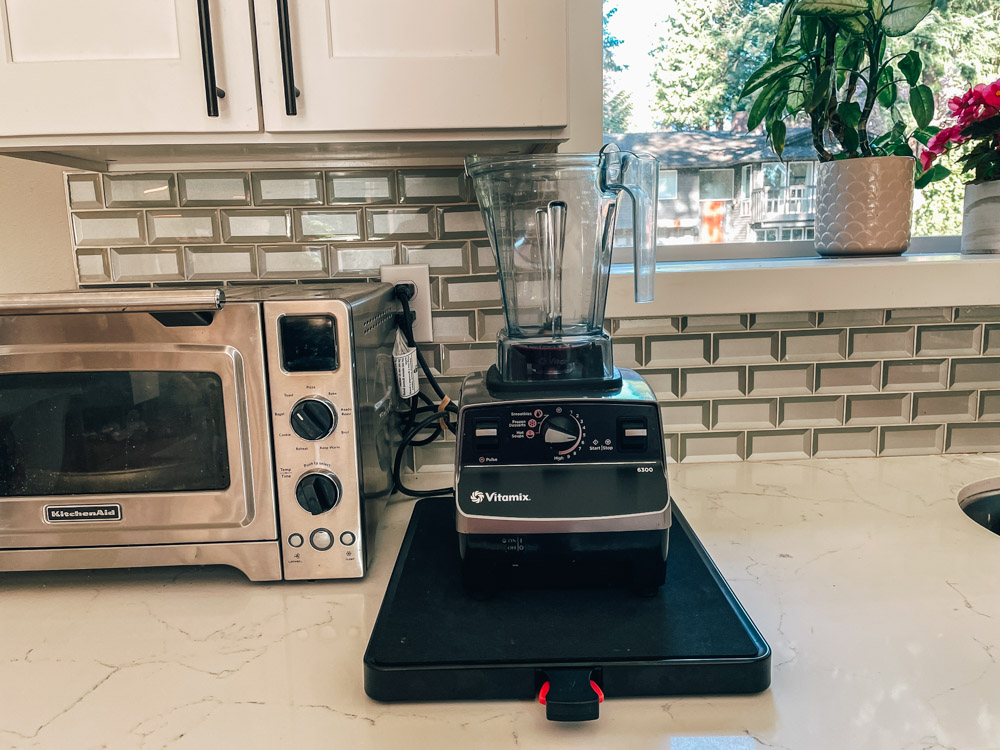 I use my Vitamix almost every day to make smoothies for me and my kids. I hated how I had to drag that thing out and it would leave marks on the counter top. The tray has helped so much and you can use it on any appliance, think instant pot, coffee pot, stand mixer! It comes in several sizes so you can get the right one for you.