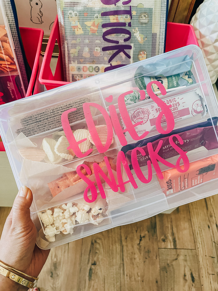I thought it would be a fun idea to make each kit personal for both my girls, so I got my Cricut Explore 3 to make some labels for pouches and the tubs!